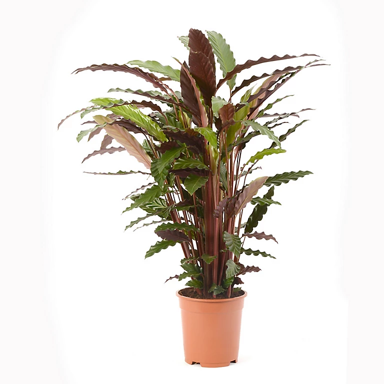 | Conseils d'entretien | Le Calathea, en raison de ses origines, aime l'ombre ou la lumière filtrée et les environnements humides où la température oscille entre 15 et 23 degrés Celsius. Si vous donnez un peu d'eau à votre calathea 2 fois par semaine et l'aspergez régulièrement, il vous remerciera en purifiant l'air que vous respirez. Bon à prendre ! En hiver, le Calathea a besoin d'un peu moins d'eau et au printemps, il aime être rempoté. |