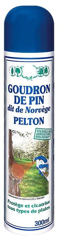 Le cicatrisant goudron de pin aérsol permet de cicatriser et de protéger des plaies de taille ou accidentelles, Sa formule goudron de pin « dit de Norvège », origine certifiée des LANDES, permet une cicatrisation rapide en 4 à 6 semaines, Les propriétés naturelles du goudron de pin permettent aussi une protection contre la pénétration des micro-organismes, Son format aérosol est pratique et facile d’utilisation,