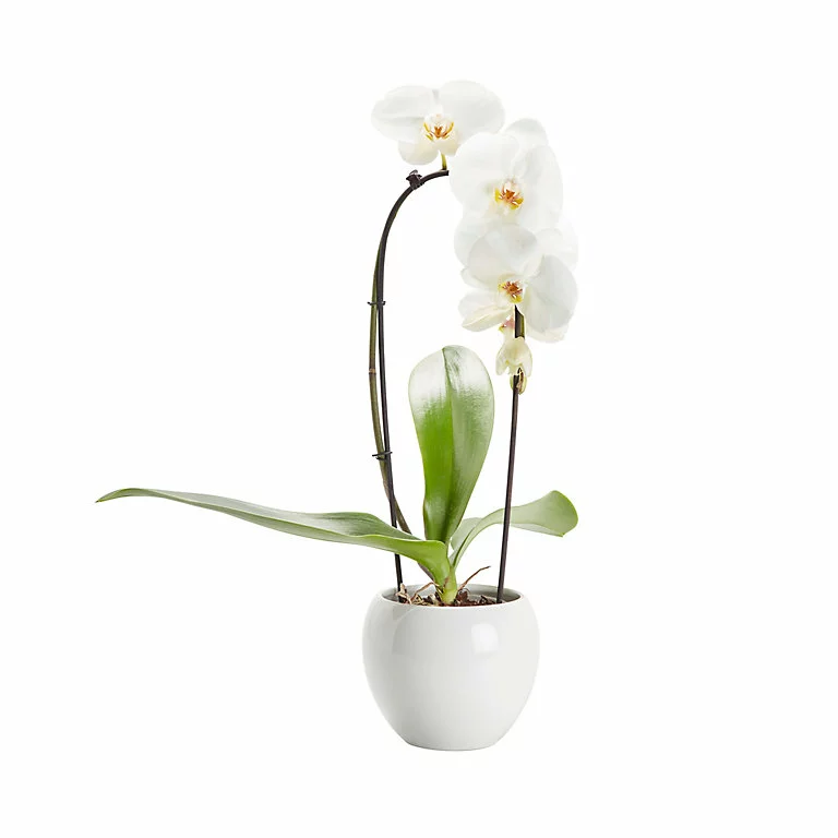 Orchidée Grandiflora blanche 1 tige avec pot en céramique 14cm
