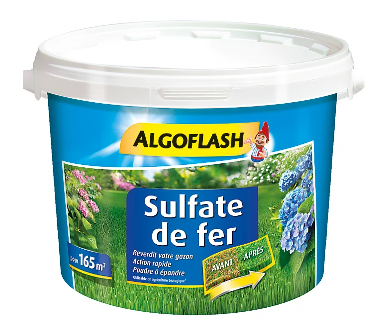 - Limite les risques de chlorose de la pelouse à l’origine du jaunissement.